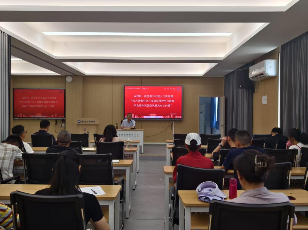 2025年6月11日,学院党委书记殷云飞以“深入贯彻中央八项规定精神学习教育——以良好作风促院风教风向上向善”为主题,为全体教职工党员讲授专题党课。