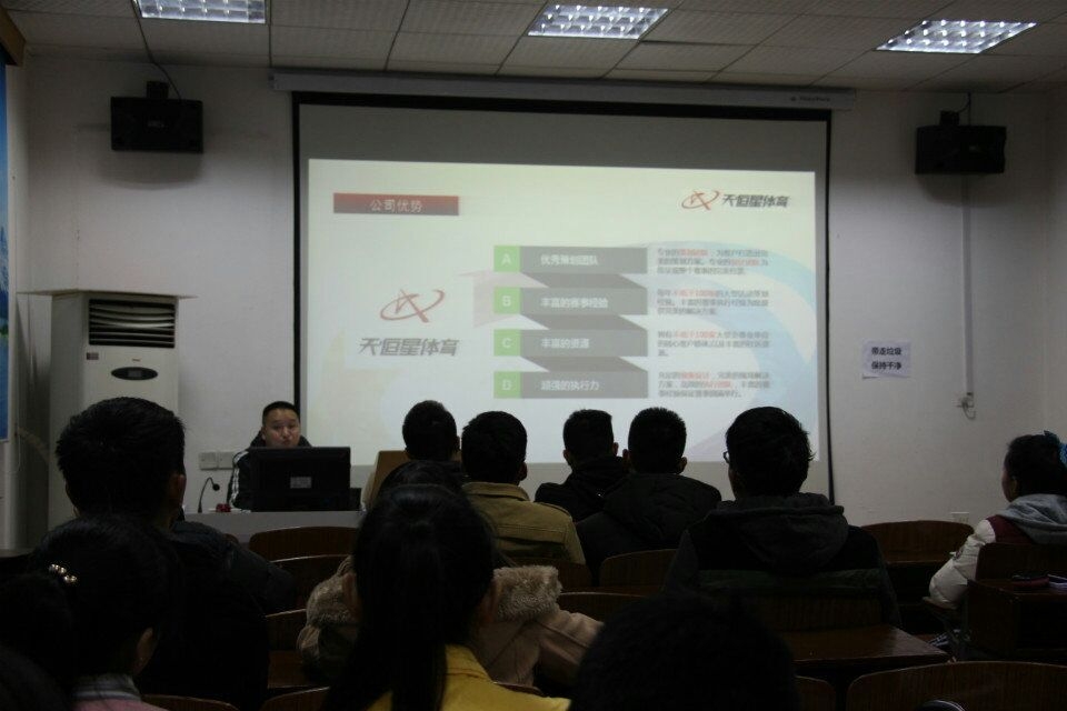 12月10日晚,在2138cn太阳集团城教学楼8111室,我院优秀校友,武汉天恒星体育文化投资管理有限公司总经理,2001级社会体育专业吴晓明应邀来院作报告。
