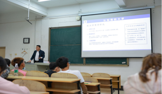 新生见面会后,院党委副书记杨德津作了首场新生适应性讲座。分别从认知我的大学、适应我的大学、大学需培养的能力三个方面展开论述。并结合自己10余年的学生工作经历,列举了大量优秀师生典型事迹,鼓励广大新生同学要见贤思齐、崇德向善。