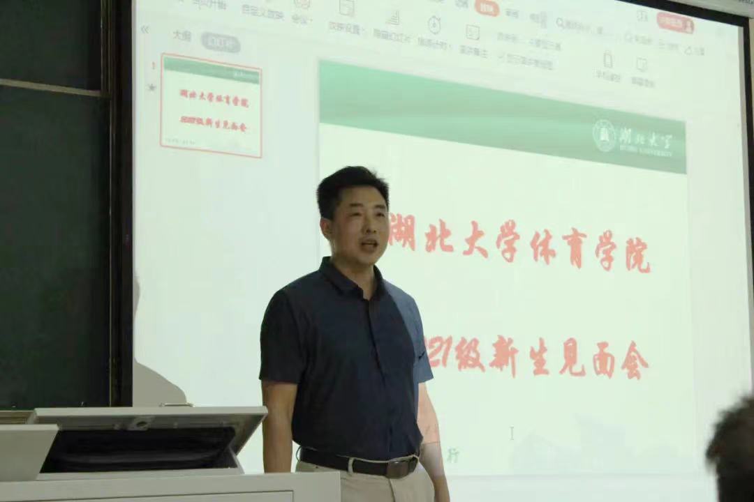 张春合院长做新生入学教育讲座。张院长通过五个要点向大家讲述了研究生“怎么学习、学习什么”的问题,要求大家了解研究生培养生态以及各种体育资讯和相关时事政策,专注专业与行业、关注自己,正确定位自身。同时还强调要以体为本,在科学研究中学会勇于创新、进行学习的转变、设计好自己的研究生之路。