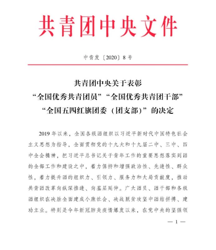 在五四青年节来临之际,共青团中央发布关于表彰“全国优秀共青团员”“全国优秀共青团干部”“全国五四红旗团委(团支部)”的决定,学院优势项目运动队团支部荣获“全国五四红旗团支部”。