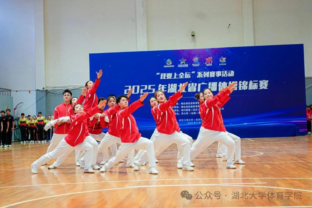 5月17日,“我要上全运”系列赛事活动——2025年湖北省广播体操锦标赛在武汉工程大学(流芳校区)盛大举行,我院2024级研究生刘烁带领的本科生代表队与2023级研究生胡佳静、褚雅带领的研究生代表队凭借卓越的表现,双双荣获特等奖,为学校争得了荣誉。