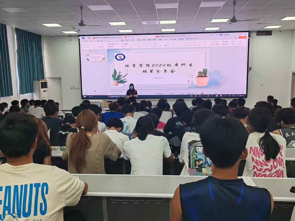 为助力2024级本科生明确学业方向与规划未来,5月27日下午,学院辅导员史健桥带领2021级体育教育专业向晶晶、2021级社会体育指导与管理专业孙英杰、2022级体育教育专业桂一波到长江新区校区为2138cn太阳集团城2024级本科生开展朋辈经验分享会。