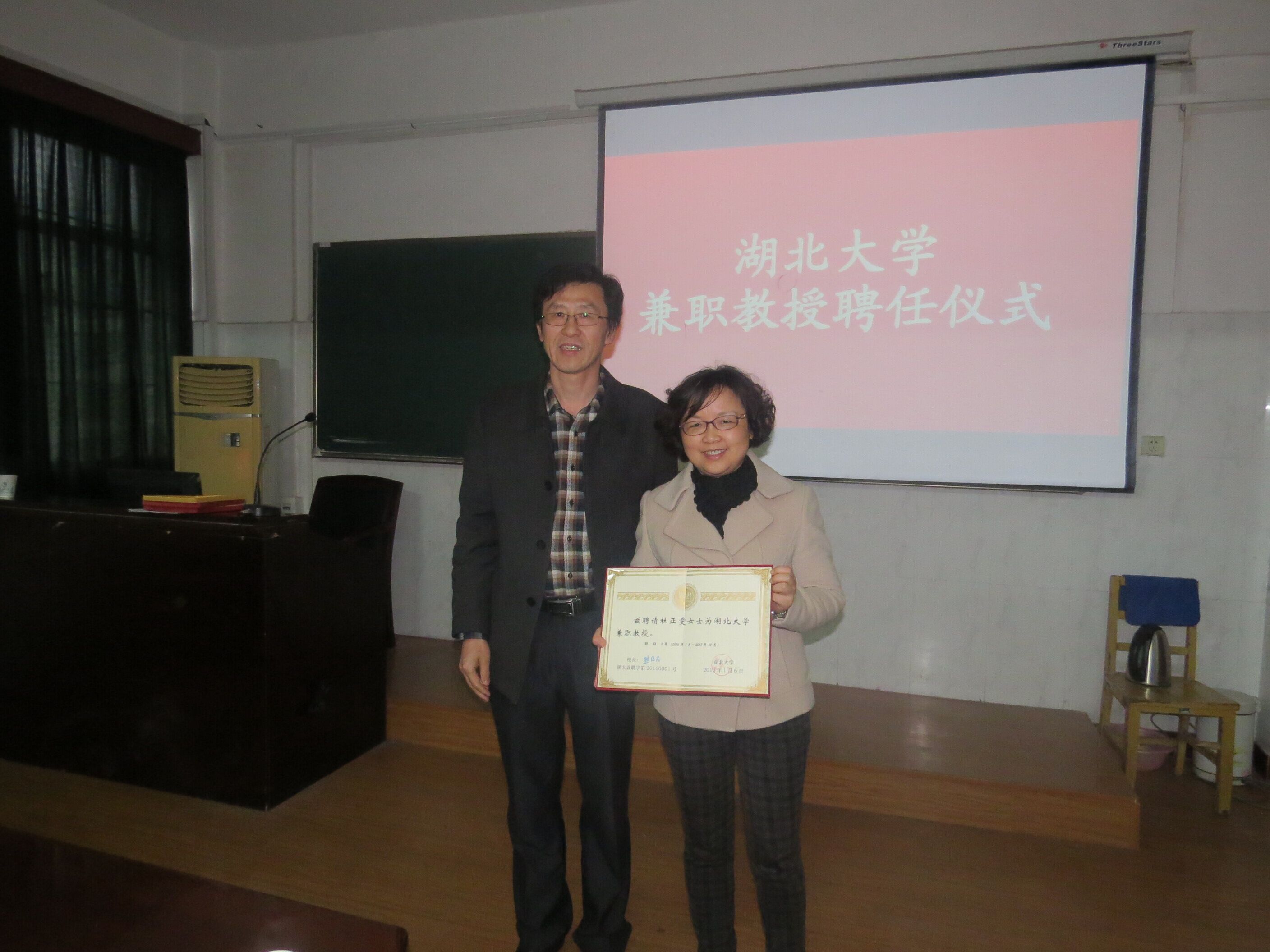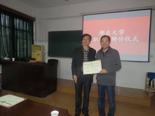 4月6日,我院举行仪式,聘请湖北省体育局乒羽运动管理中心主任卢俊、国家体育总局运动选材与机能评定重点实验室主任杜亚雯为2138cc太阳集团兼职教授。院党委书记高连顺颁发了由熊健民校长签署的聘书,肖平副院长主持仪式。
