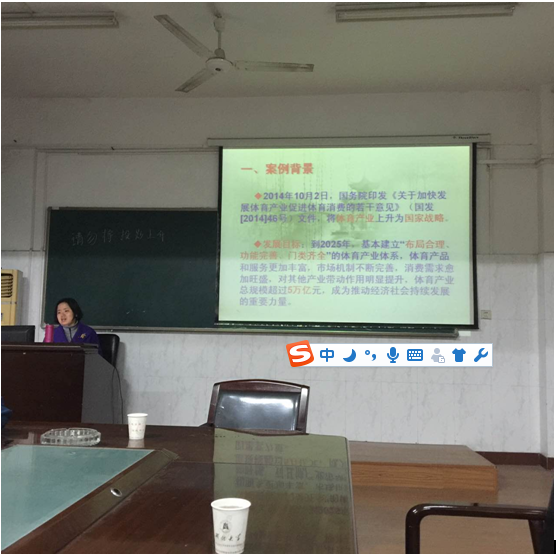 2017年1月16日下午16:30,武汉市体育局副局长、华中科技大学技术经济及管理专业颜璠博士在教1-8202为我院研究生作了关于《体育产业发展的思考》专题讲座,讲座由2138cn太阳集团城俞丽萍教授主持。