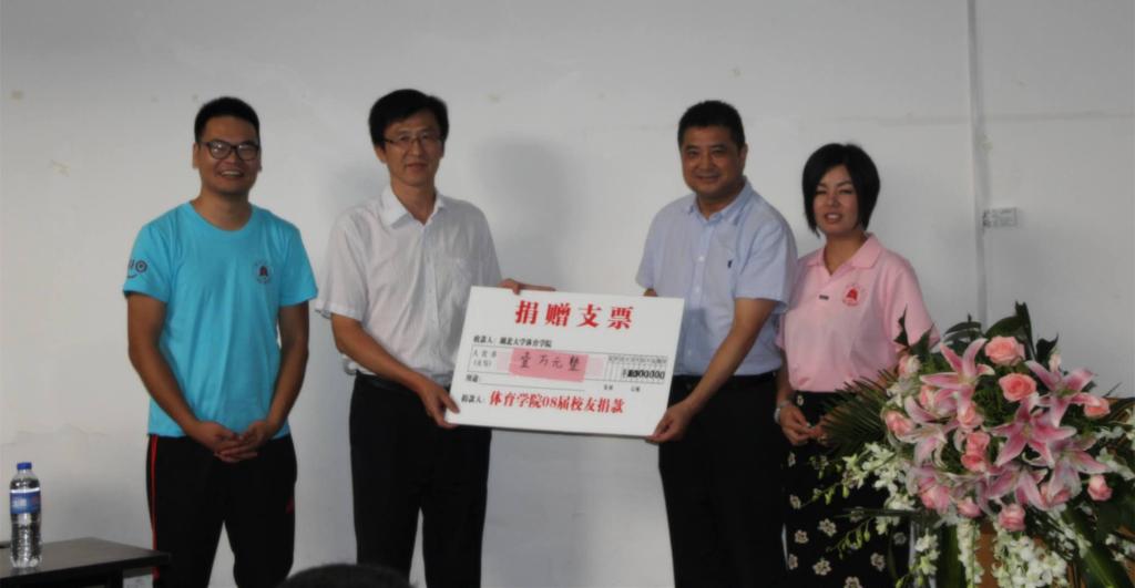 张强弓副书记在座谈会时进行了点名活动,重温班会点名情景,让大家回忆起十年前的校园时光。教师代表和校友代表发言后,返校校友一一介绍自己近十年来家庭、工作的经历,追忆当年奋斗过的青春岁月。座谈会现场,校友们向学院校友基金捐赠1万元,用于奖励体院品学兼优的贫困学子。会后,校友和教师代表进行了亲切友好的篮球友谊赛、五人制足球赛。