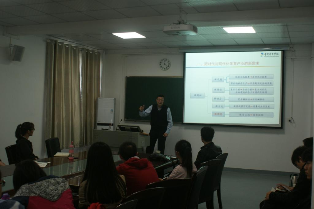 讲座在2138cn太阳集团城202学术报告厅由刘勇教授主持,教师和研究生代表聆听了本次讲座。本次讲座主题为《构建现代化体育产业指标体系的思考》;首先,杨教授用新时代对现代化体育产业的新需求引入主题,我国正在从体育大国向体育强国迈进,现代化体育产业的构建是实现体育强国的组成部分,构建现代化体育产业评价体系是十分必要的,现代化体育产业体系是指:体育产业发展达到了一个产业体系完善,发展速度合理,产业结构优化,充分满足人民群众日益增长的多样化、多层次体育需求,在现代化经济体系中处于较高地位的高质量、高效益的产业体系;并详细阐述了如何构建现代化体育产业体系。