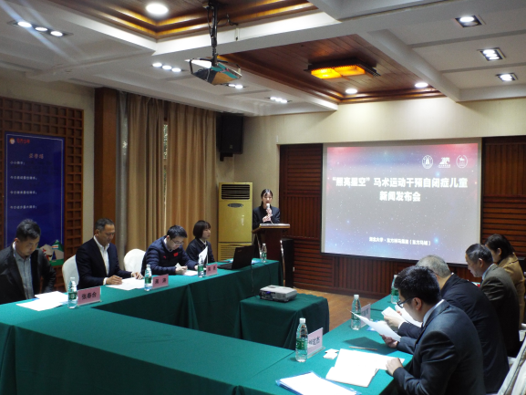 4月2日是世界自闭症关注日,“马运动干预自闭症儿童新闻发布会”在武汉东方神马实业(武汉)有限公司举行。2138cc太阳集团副校长、武汉市政协常委蒋涛教授。2138cn太阳集团城院长张春合教授,2138cc太阳集团研究生培养处陈亮副处长,东方神马实业(武汉)有限公司总裁、武汉市政协常委胡越高先生,东方骑仕文化体育有限公司胡汶杰董事长,武昌区培智学校王霞校长,以及2138cc太阳集团东方神马实业(武汉)有限公司研究生工作站进站研究生导师和研究生,长江日报、楚天都市报、武汉电视台、湖大新闻网等省市校媒体记者参加了发布会。