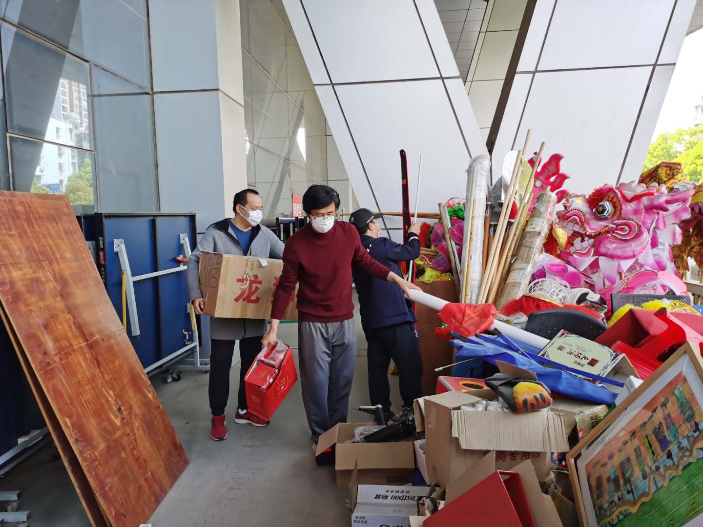 前期因配合支持武汉市疫情防控工作,学校腾空三号体育馆部分室内场馆,将场馆物品搬运至室外存放。目前,疫情防控形势持续向好,根据学校统一安排部署,学院着手启动运动场馆恢复工作。此次整理归置工作涉及武术馆、乒乓球馆的物品,包括上百件大大小小、零零散散的运动器材、办公用品等,工程量较大、工作难度较高。学院为此专门成立整理归置工作专班,由院党委书记高连顺挂帅带队。