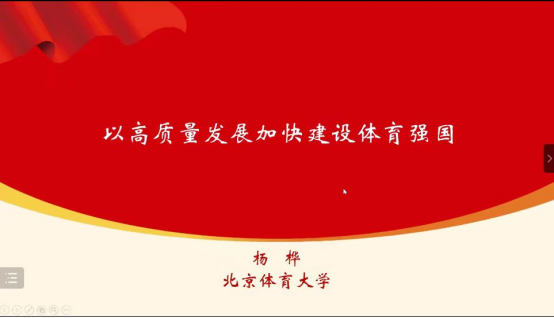 11日上午9时,张春合院长向参加大会的师生介绍了三位专家在各自学术科研领域的经历与成就,并代表学院向毛振明教授、杨桦教授、段锐教授长期以来对我院学科、专业建设的关心、支持和帮助表示衷心的感谢。随后,三位专家围绕各自研究领域,分别做了学术报告。毛振明教授围绕“体育树人与课程思政”开展了《体者,遇道德之舍也——谈体育树人与课程思政》的专题报告。段锐教授用一些科学家的科研案例,引出了“浅谈科研思维培养”的主题报告,随即抛出一系列科研问题,与参加活动的师生形成了良好的互动。杨桦教授从“高质量发展是建设体育强国的首要任务”、“高质量发展加快体育强国建设的理论立足点”、“高质量发展加快体育强国建设的实践着力点”三个方面,分析了加快建设体育强国的深层次内涵。