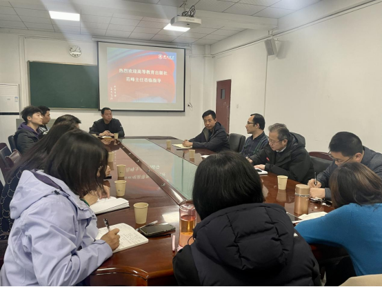 3月28日下午,高等教育出版社文科事业部副主任、体育分社社长范锋来我院与教授委员会成员和各研究中心主任座谈交流,院班子成员参加,院长张春合主持会议。