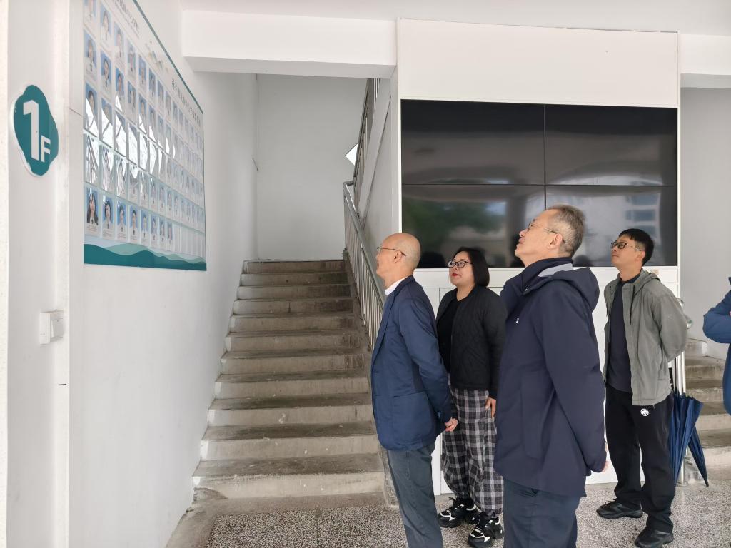 殷云飞一行首先前往燕子镇民族中心学校,向在该校的姚基金志愿支教学生闫华建详细了解了支教情况,在校长田学芹的带领下参观了校园环境、教学设施、湖北张松信息科技名师工作室以及支教学生的工作场所。