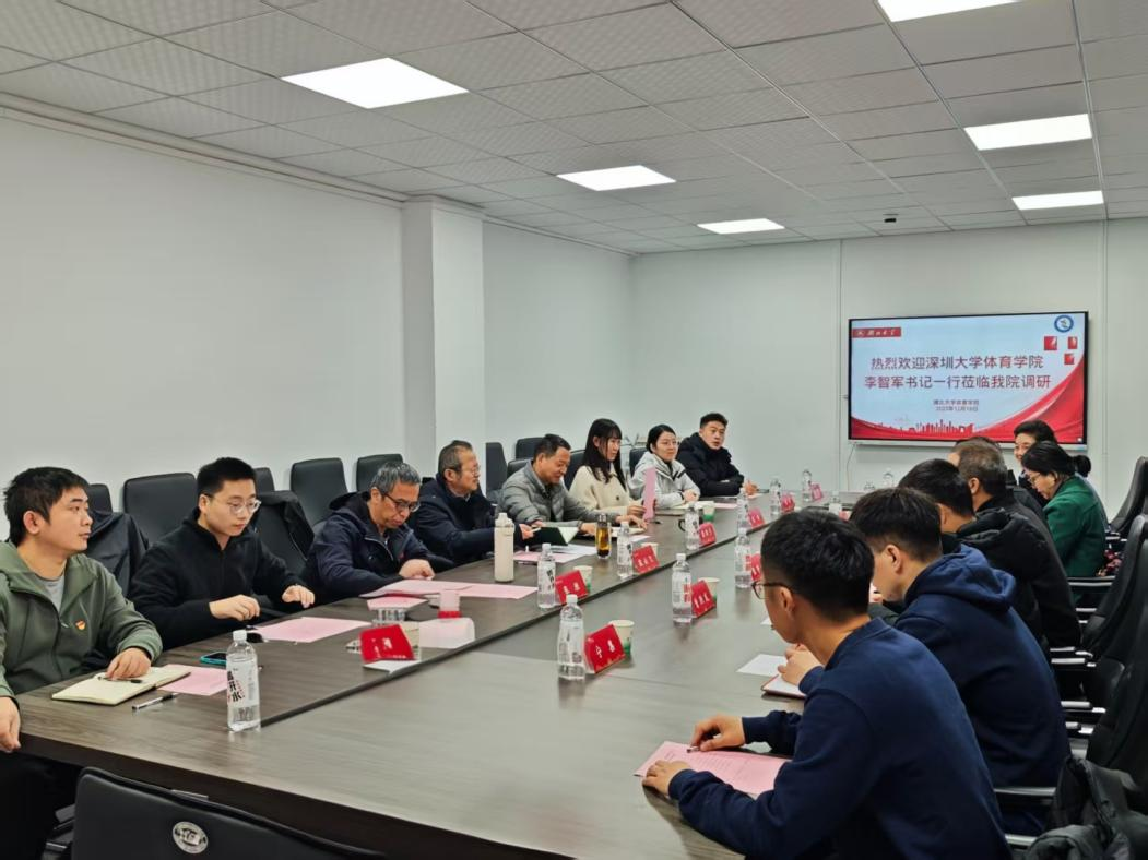 12月18日,深圳大学2138cn太阳集团城党委书记李智军、副院长张得保等一行莅临我院开展党建调研交流活动。双方围绕学院建设发展、党建样板支部建设等议题深入探讨,深化互学互鉴。学院党委书记殷云飞、副院长张强弓及教师代表参与调研交流。