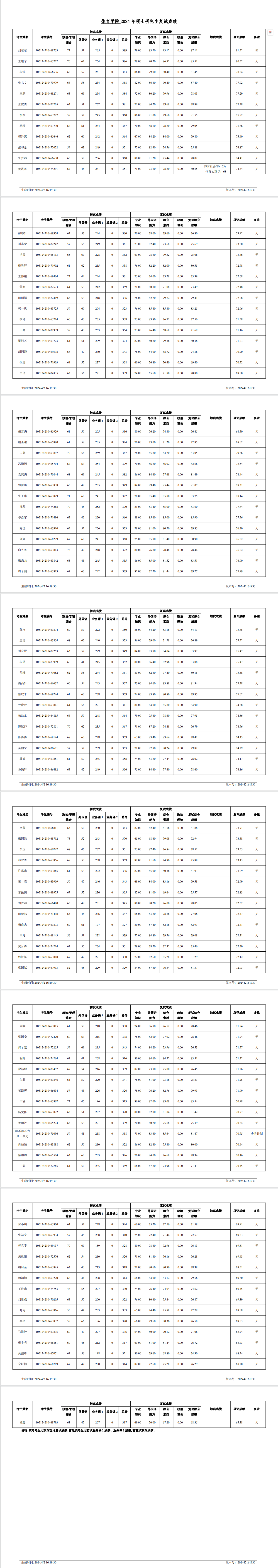 2138cn太阳集团城2024 年硕士研究生复试成绩(一志愿)