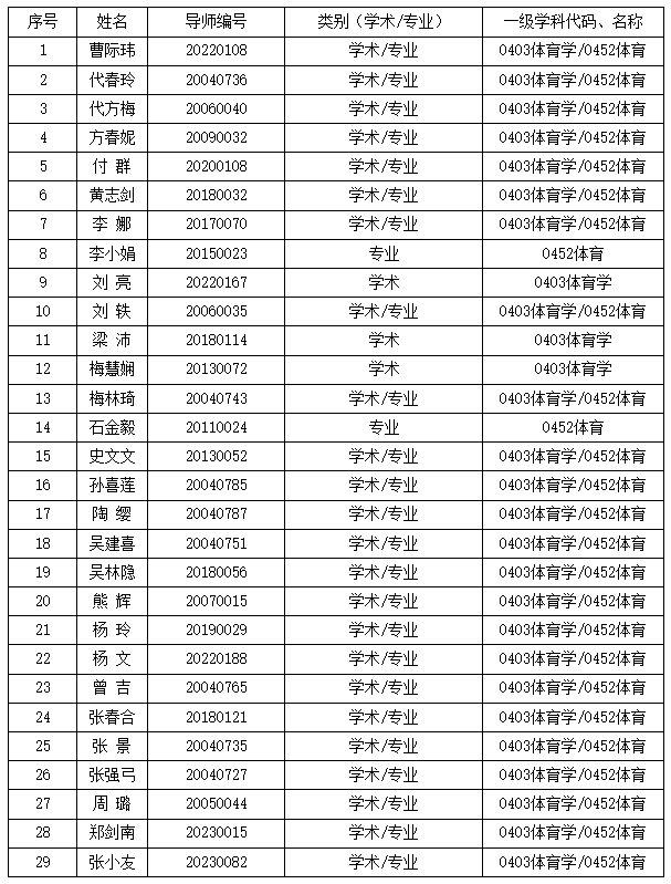 体育学院关于公布获得2025年招收硕士研究生资格教师名单的通知