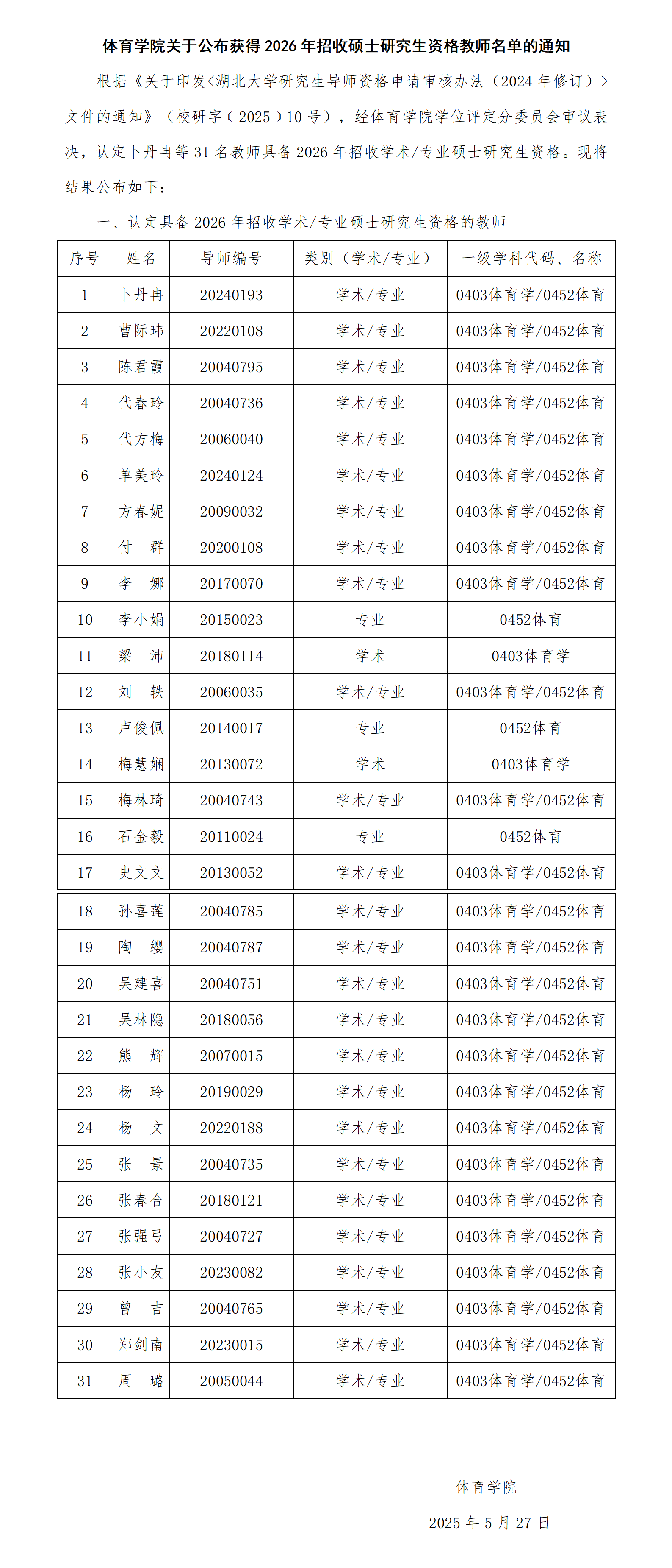 2138cn太阳集团城关于公布获得2026年招收硕士研究生资格教师名单的通知