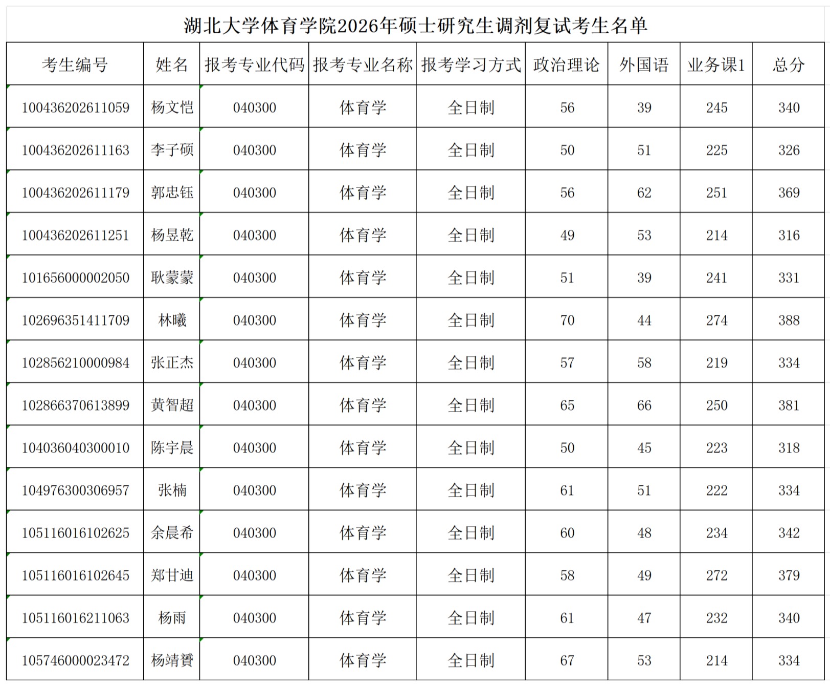 2138cn太阳集团城2026年硕士研究生调剂复试考生名单