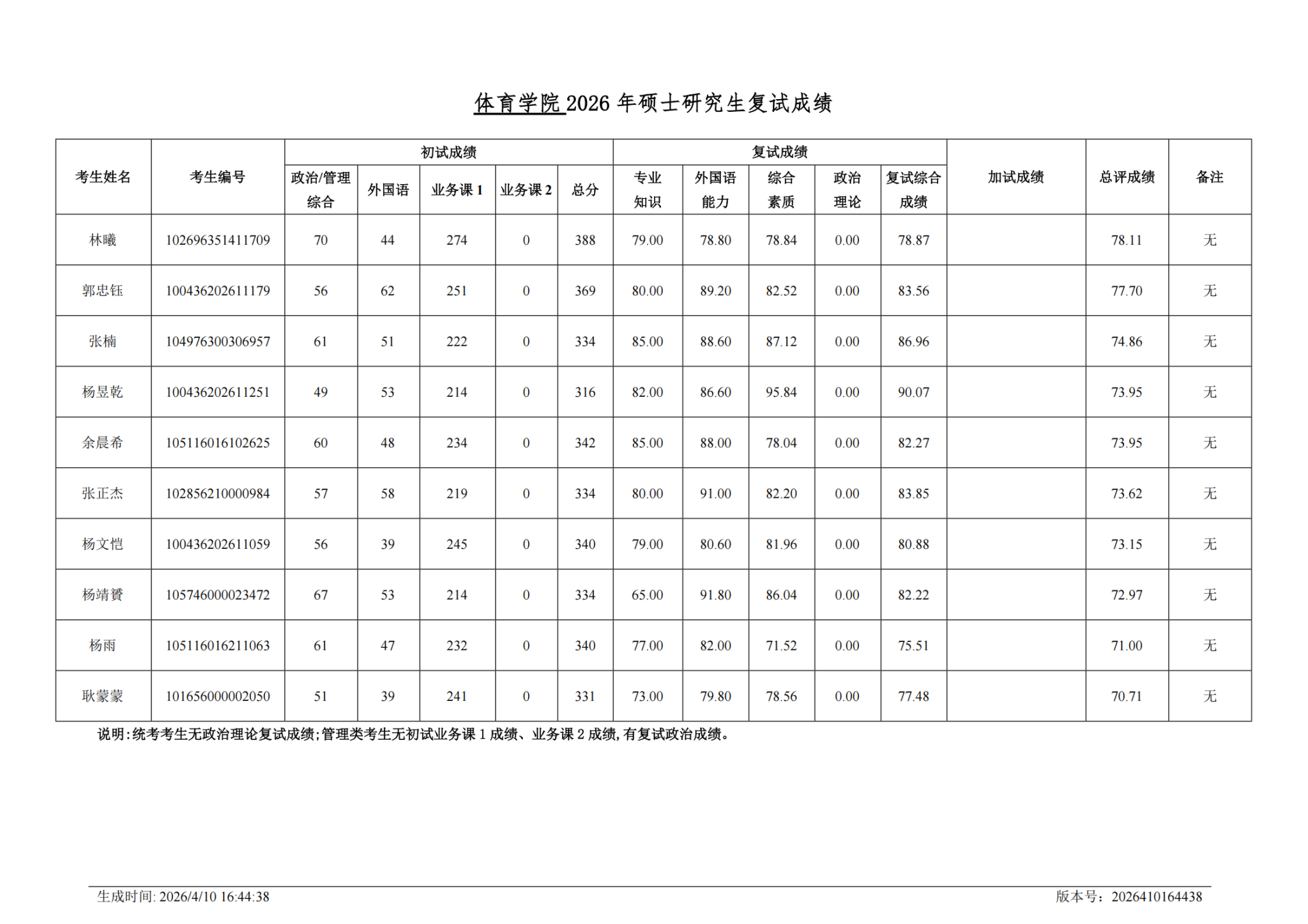 2138cn太阳集团城2026年硕士研究生复试成绩(调剂)